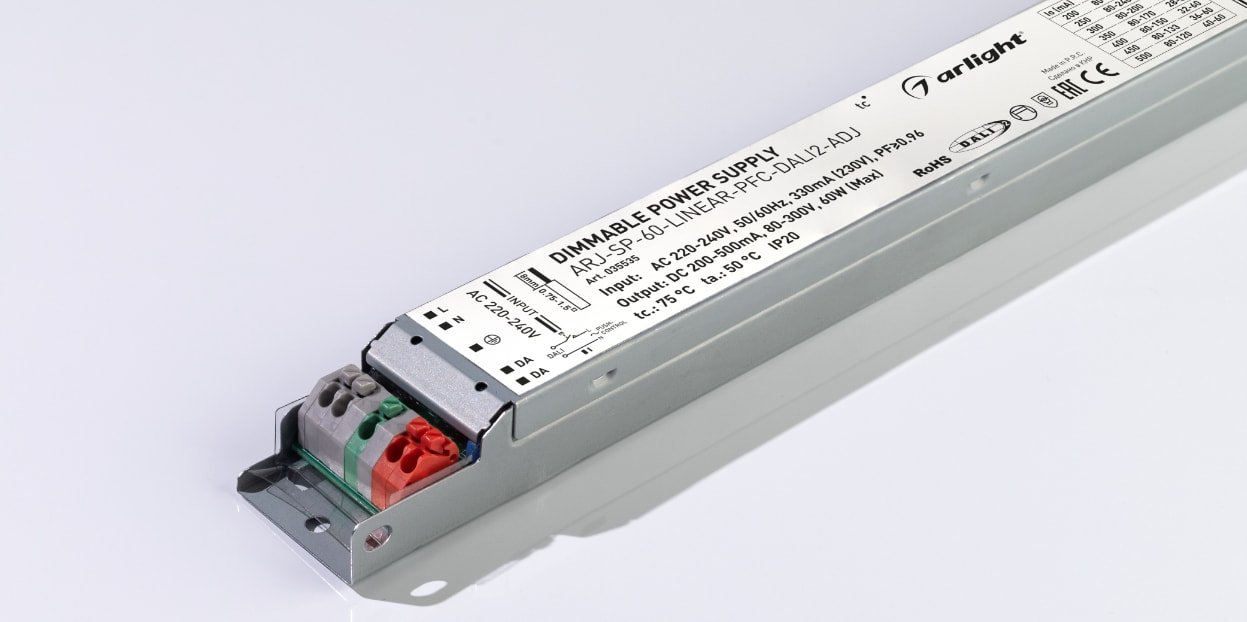 Дополнительно блоки питания оснащены выводами питания шины DALI, что дает возможность не применять специализированные источники питания DALI.